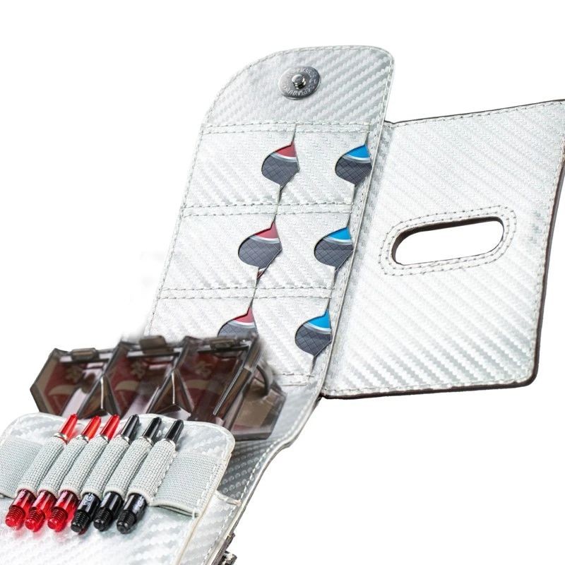 The BULL'S SECC Dartcase is made of high-quality PU material. A great advantage of the practical SECC Dartcase is that the darts with attached flight can be stored in the included ACRA X Dartcase. Additional flights and shafts can be stored in the inside of the SECC. For soft-tips & accessories there is an extra closable pocket on the back. The SECC can be easily opened and closed with a magnetic closure. (Accessories are not included)